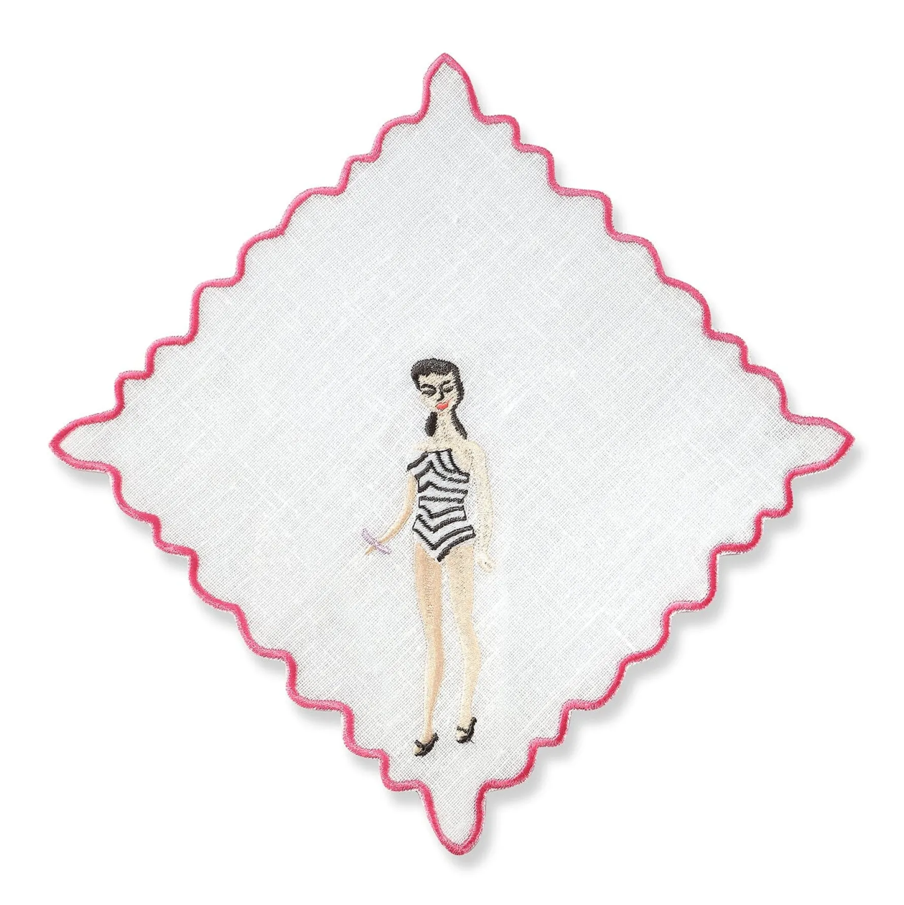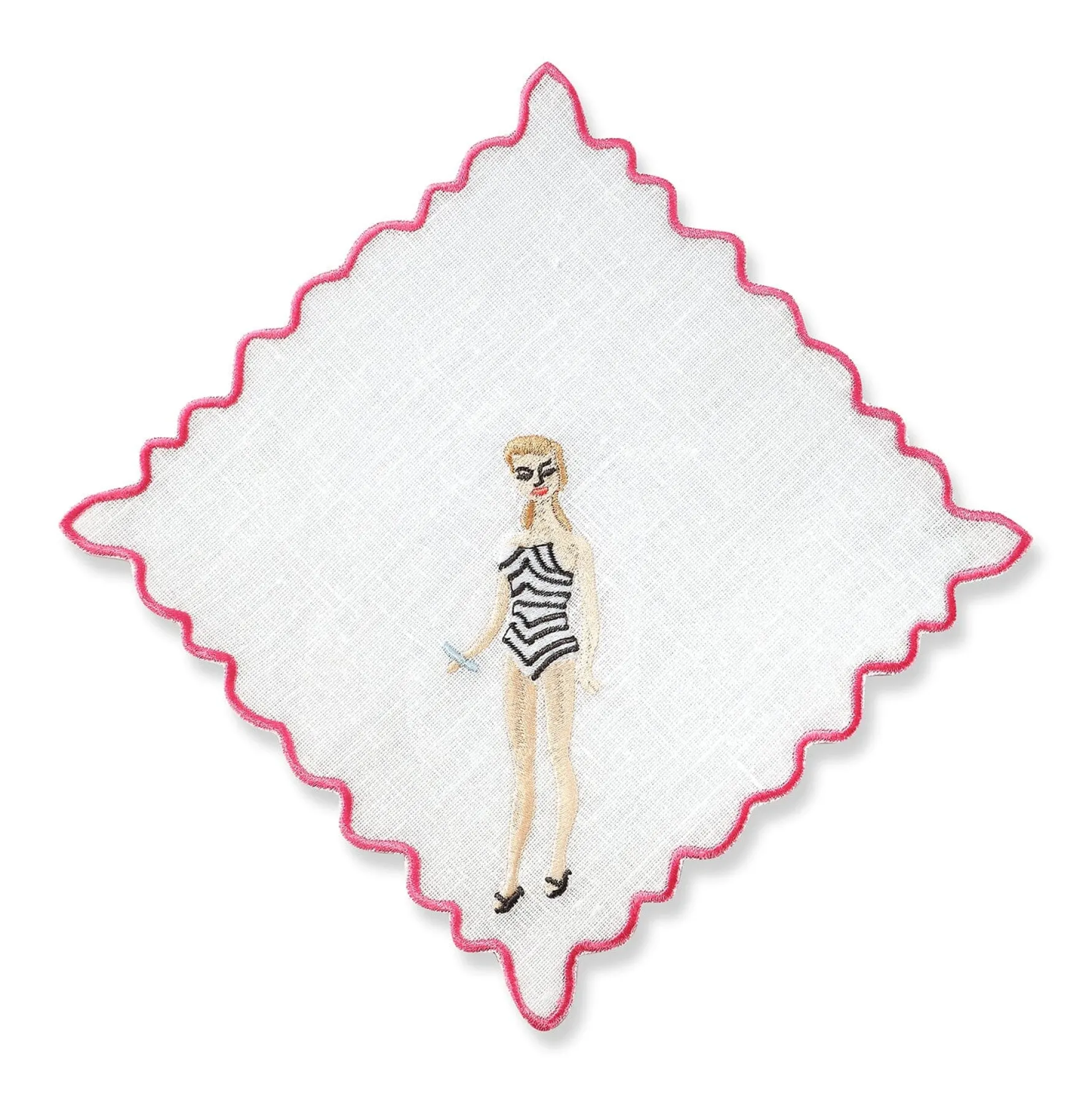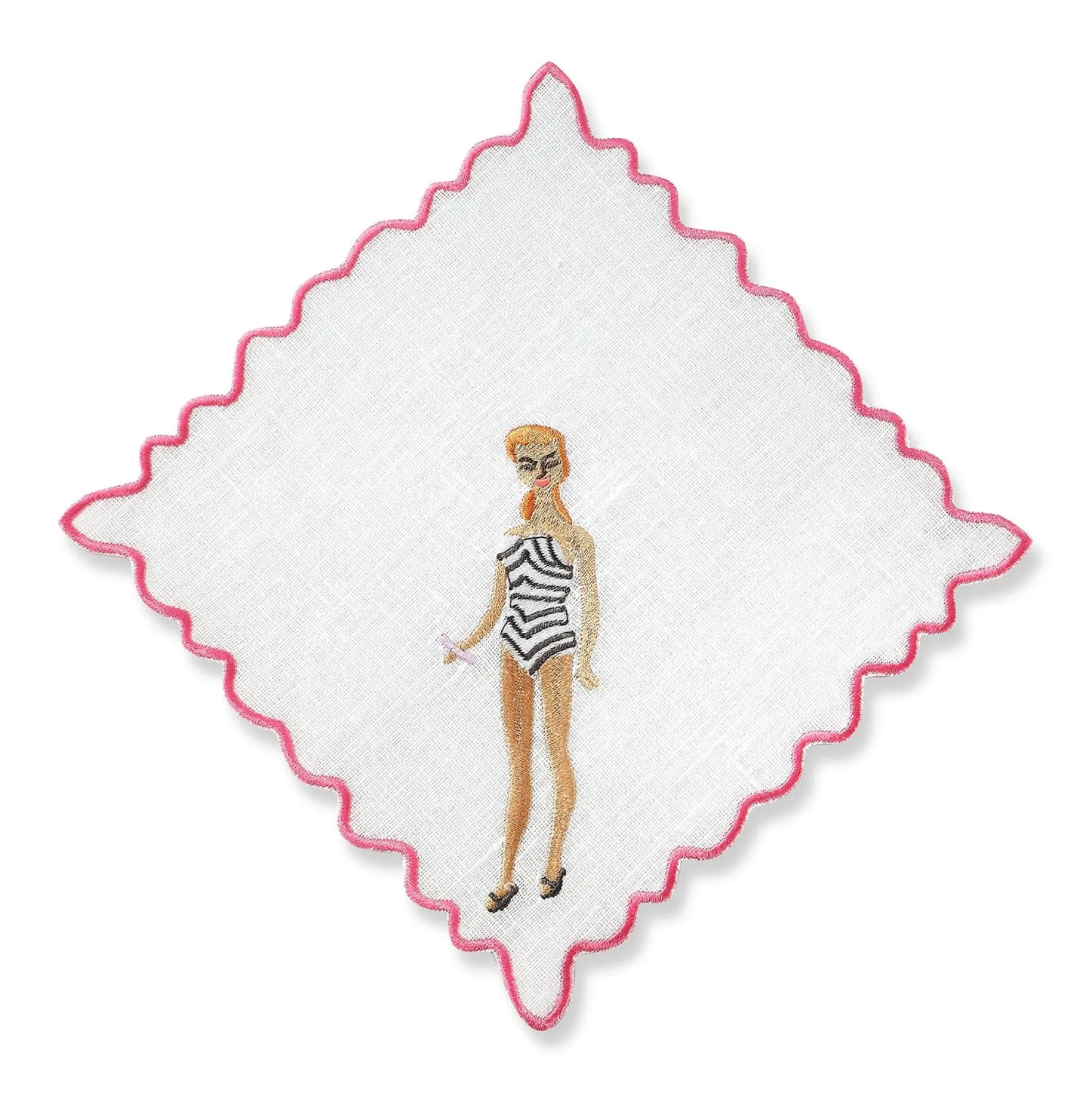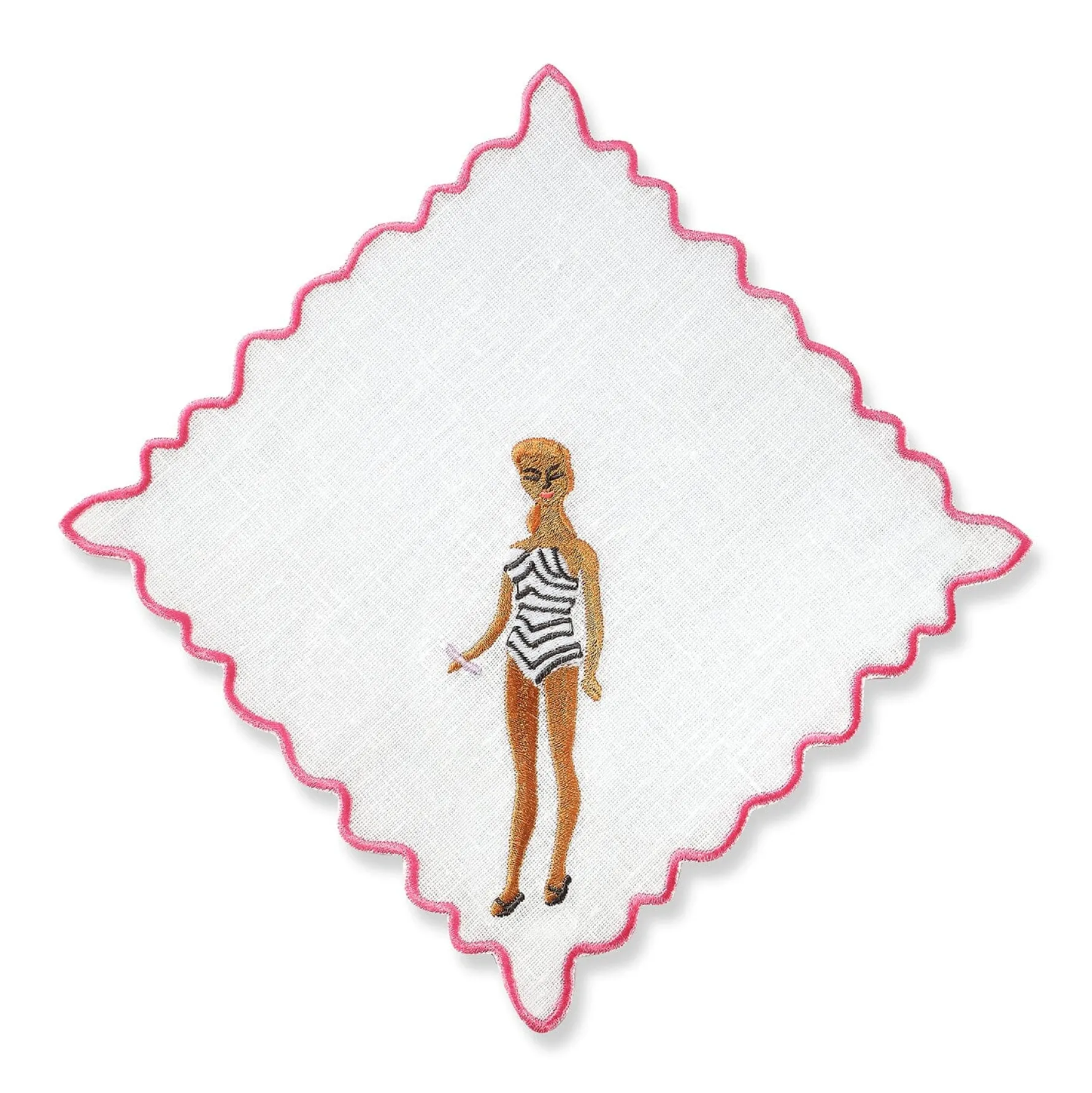 Inspired by the 2022 trend of pink Barbiecore, this cocktail napkin is perfect for themed Barbie parties.