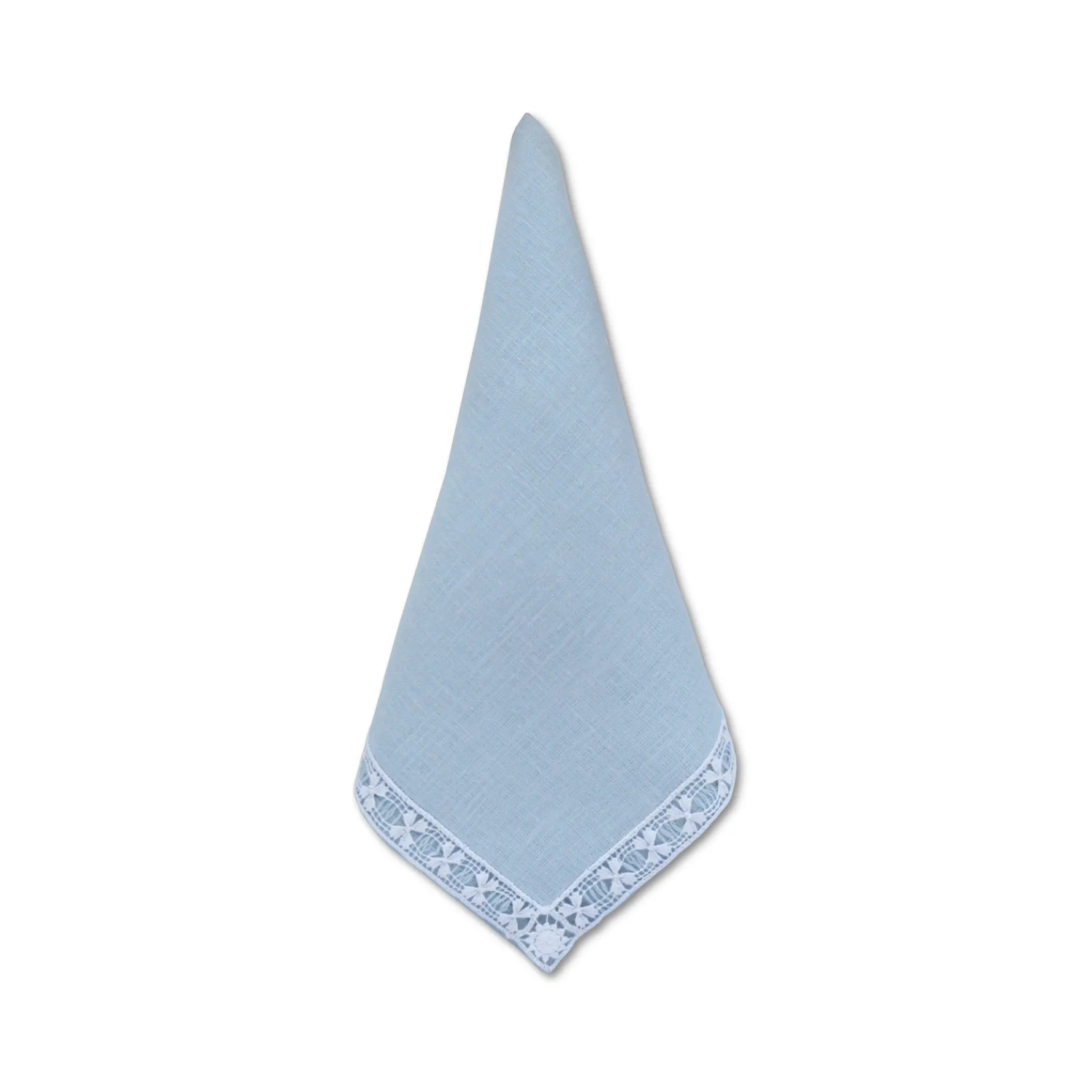 A set of dinner napkins featuring a timeless white handmade border