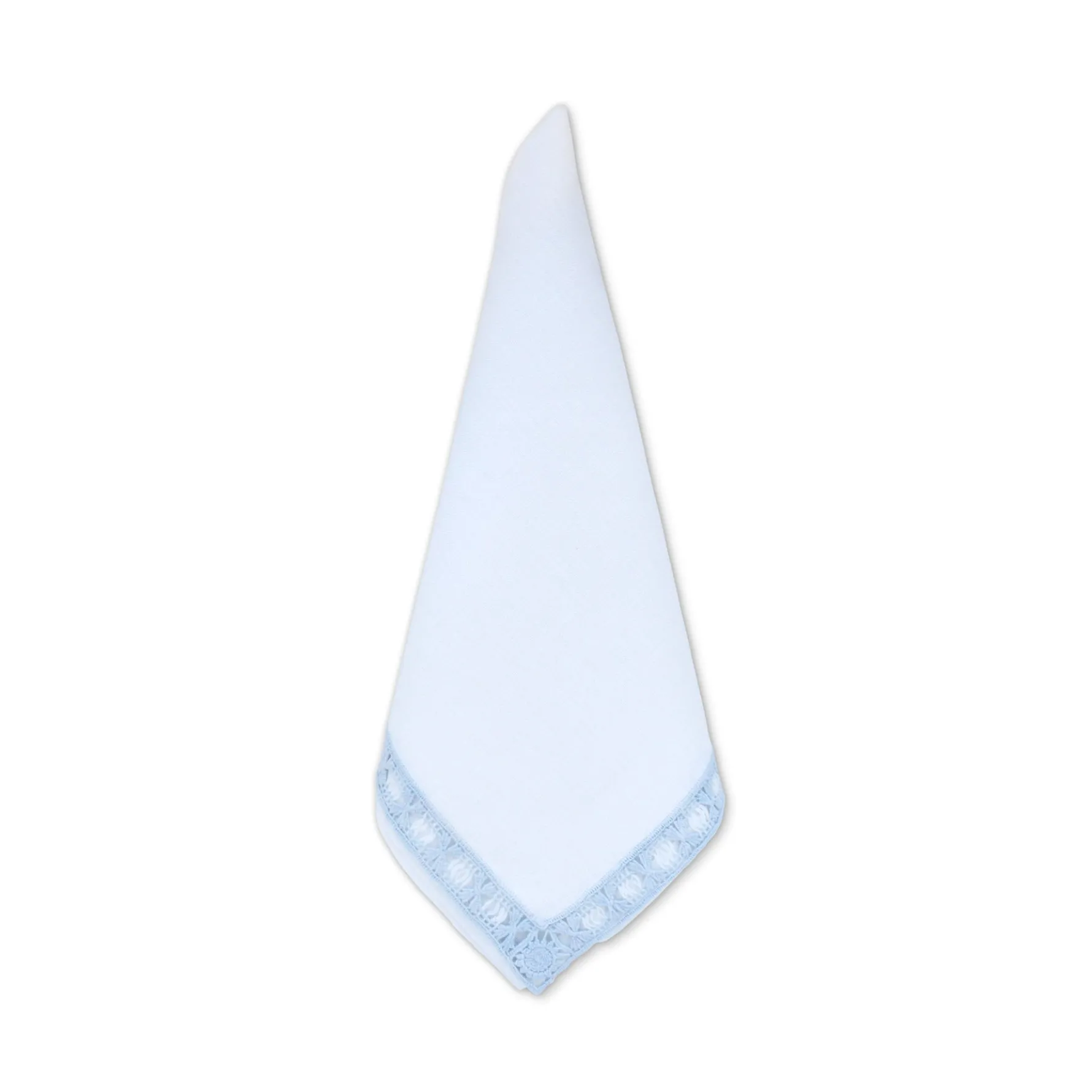 — 100% white linen with pale blue cotton thread border