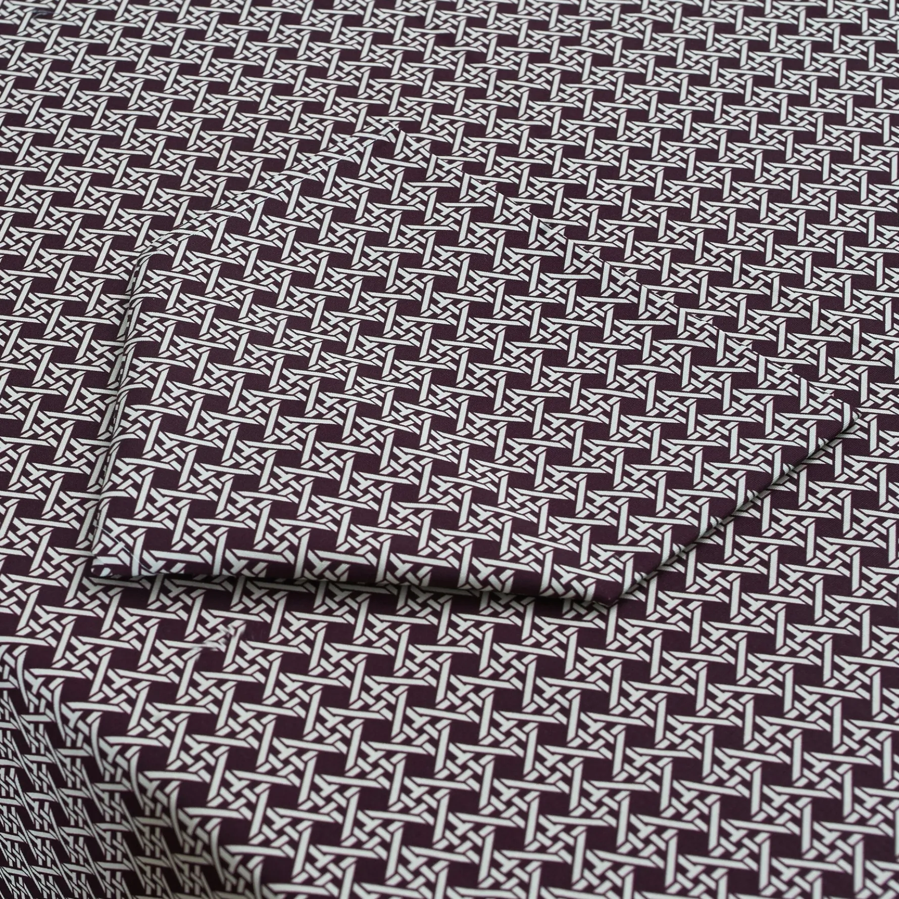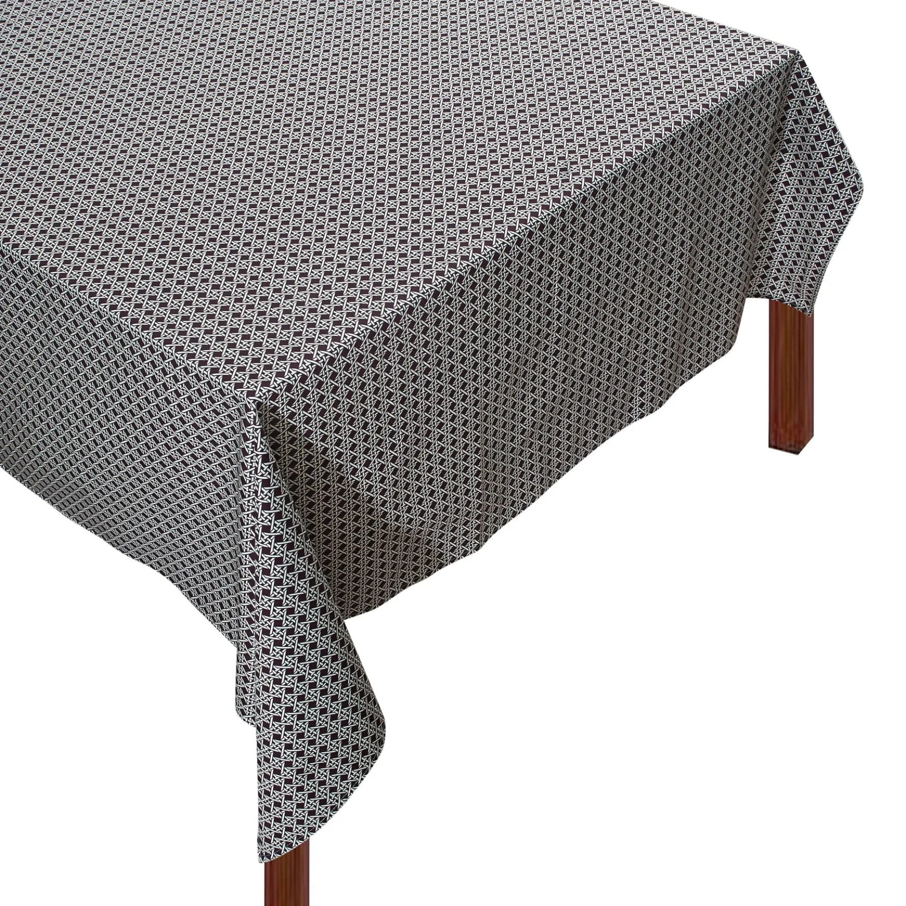 Inspired by theclassic method of weaving bamboo into this cane pattern, thisdark brown and whitetablecloth featuresan elegant pattern. Afestive covering forThanksgiving andall seasonsparties.