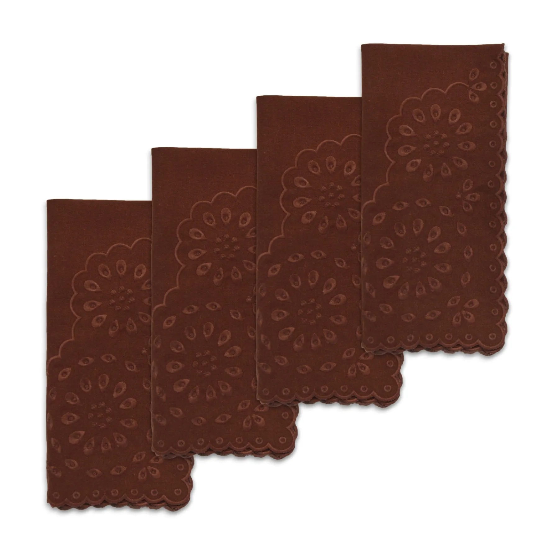 A set of dinner napkins featuring a timeless elegant eyelet pattern