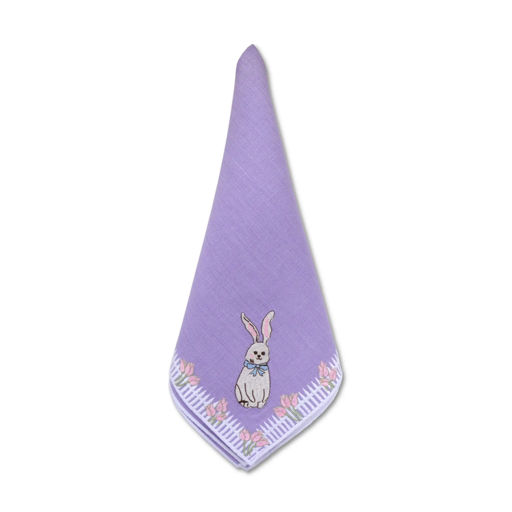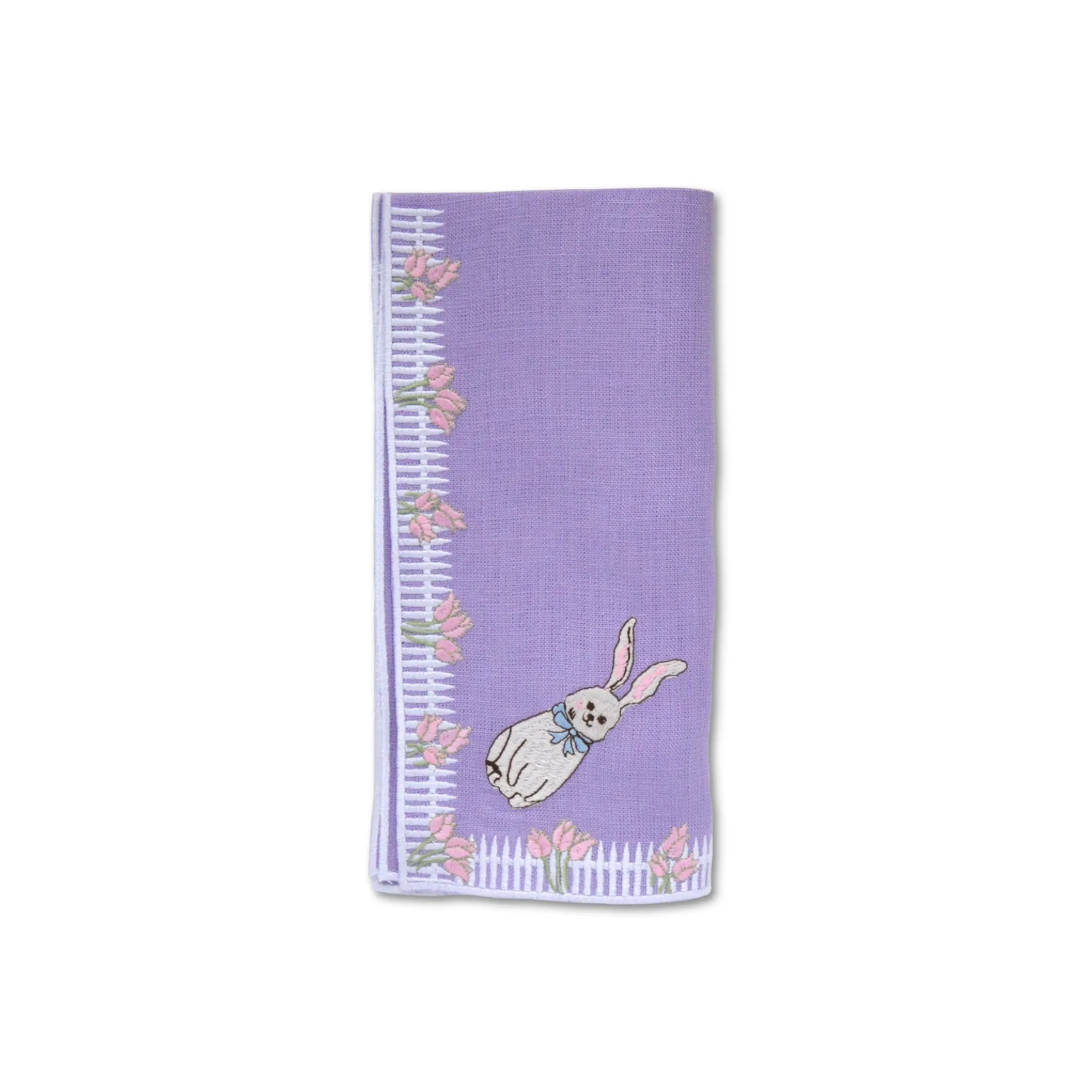 The sweet mascot of Easter is embroidered on these dinner napkins, with a white picket fence as the border.