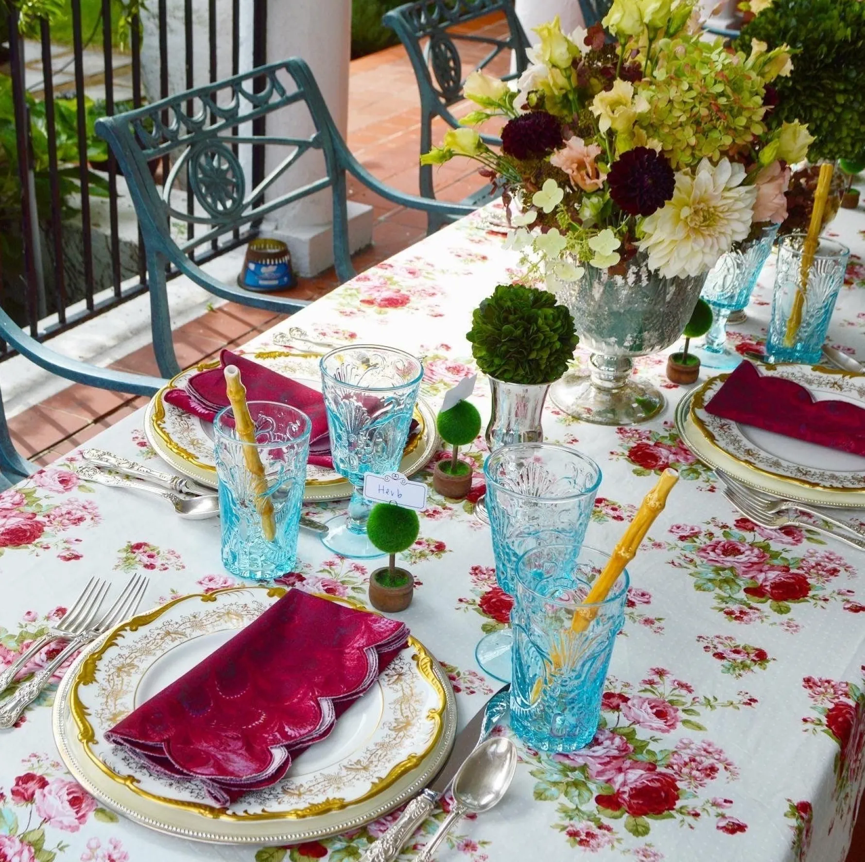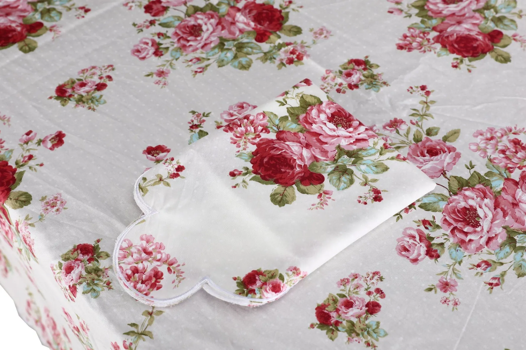This rose patterned, rectangular tablecloth is available in 2 sizes.