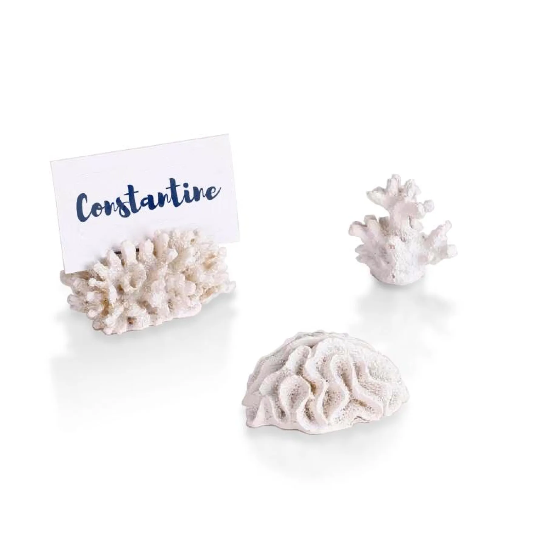 Escape to the beach at your dinner table. These resin coral-shaped place card holders will elevate your guests’ place cards. In each set, there are 3 shapes of coral.
