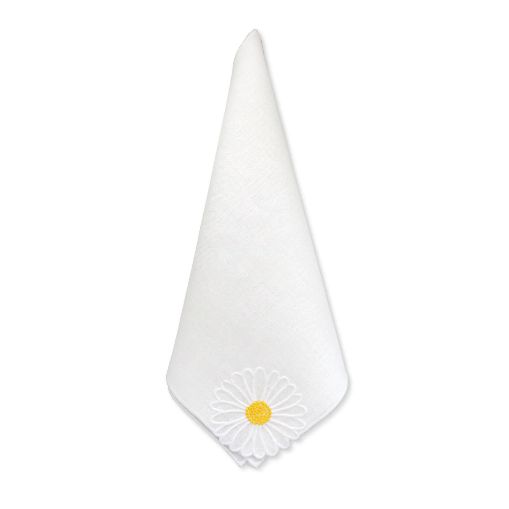 With the corner embroidery shapedlike a spring daisy, these dinner napkins mightbe the perfect accessory at asummer party in Nantucketor John’s Island– or a milestone event for a Dallas Hockadaisy!