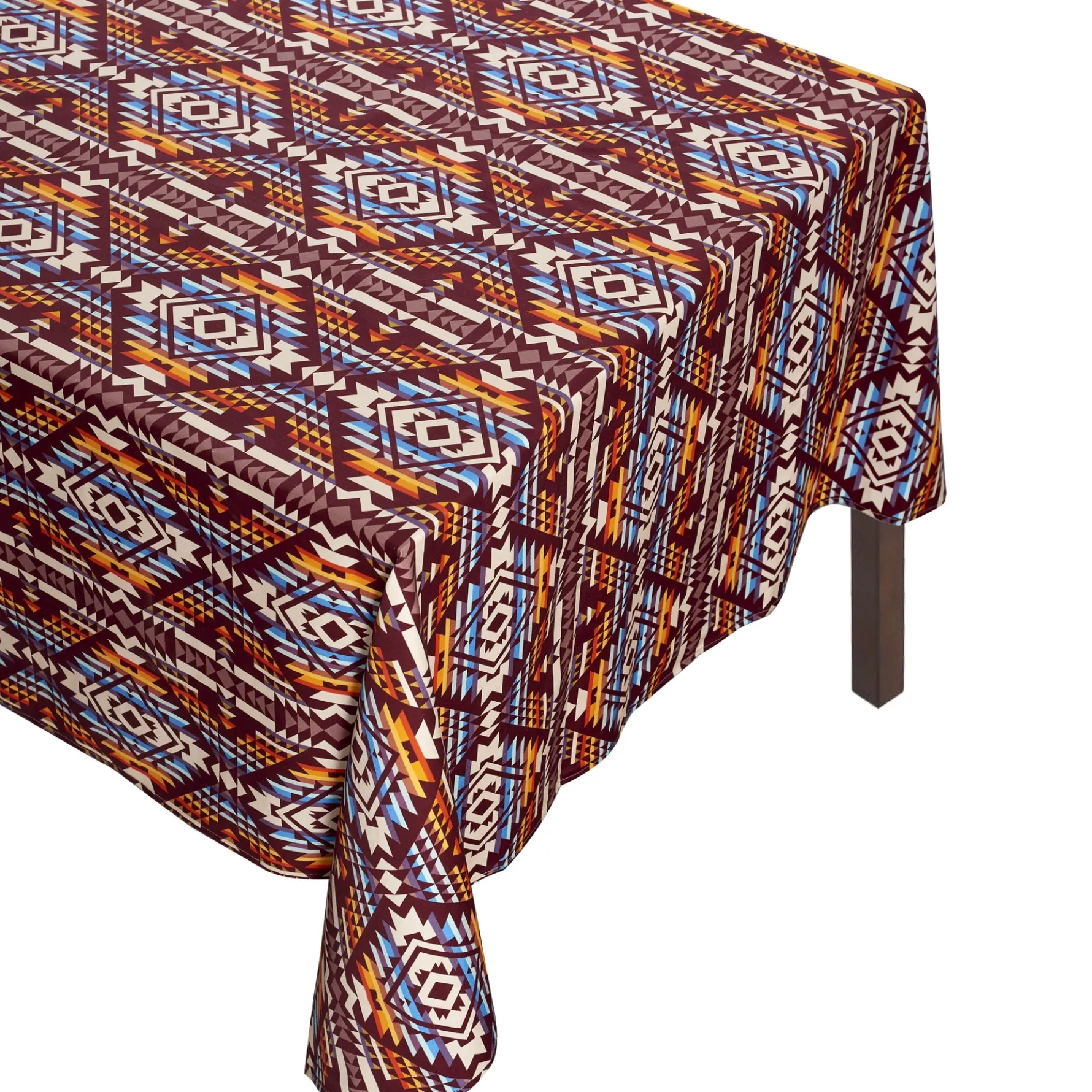 Tableclothdotted with kiss stains in a range of reds and pinks.