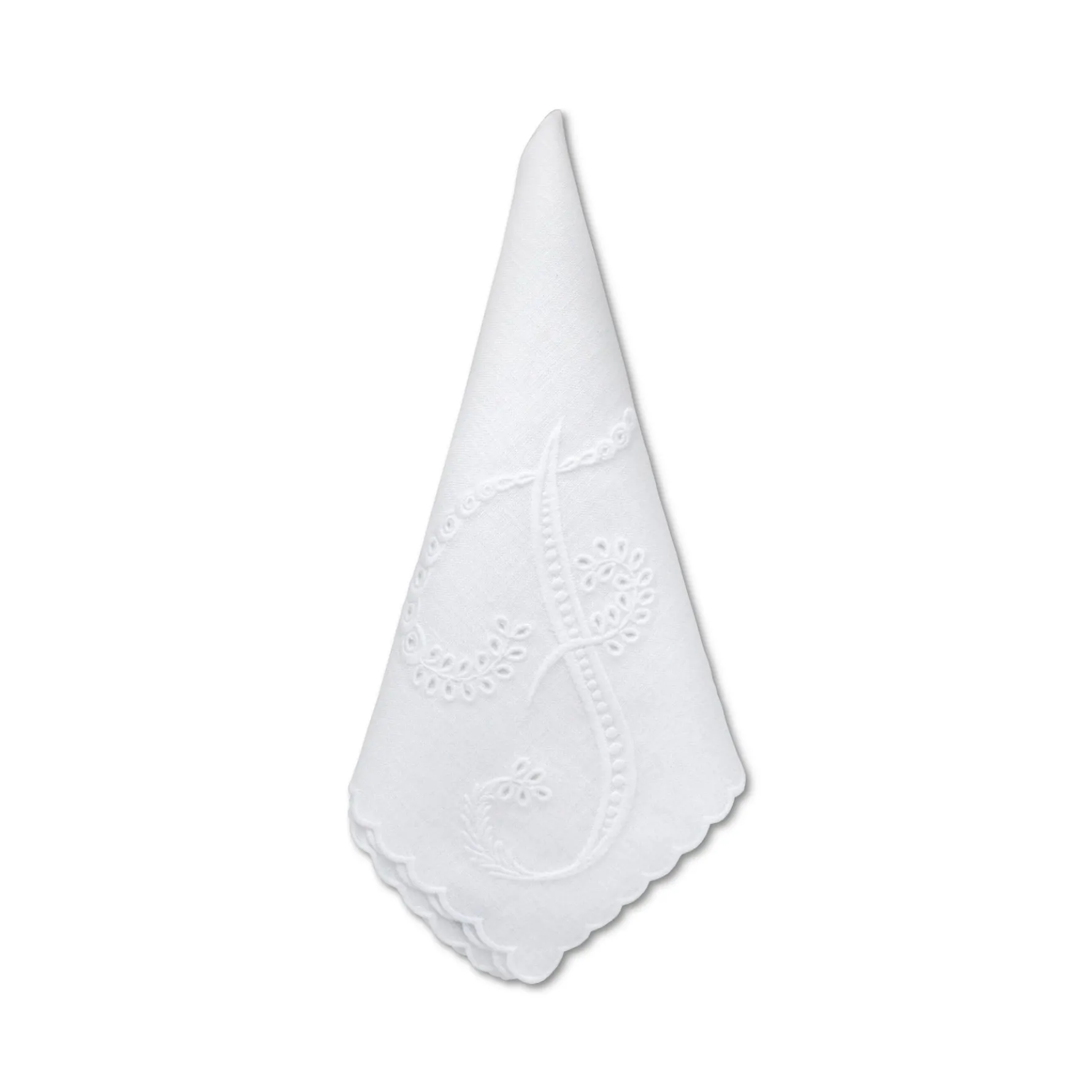 These “F” initial dinner napkins bring the perfect personal touch to your dinner table. The uppercase letter is discreetly embroidered with in the timeless cutwork technique, which creates holes in the linen as decoration. Beautiful for everyday use, springtime, & birthday celebrations.