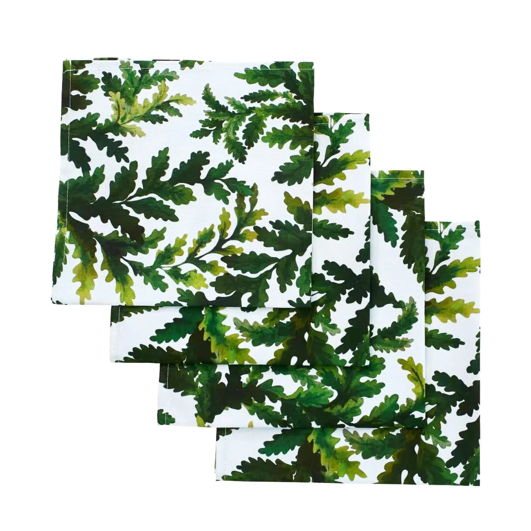 This set of 4 green leaf-patterned, square napkins are 18 inches x 18 inches.