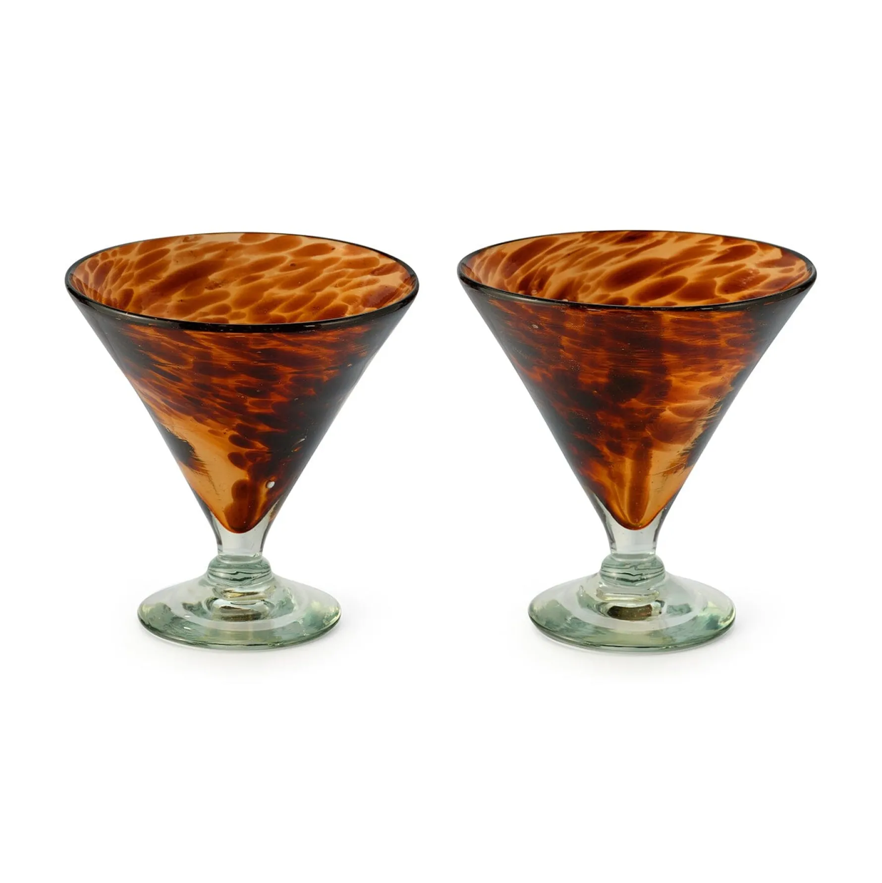 This set of 2 conical cocktail glasses is blown by hand.