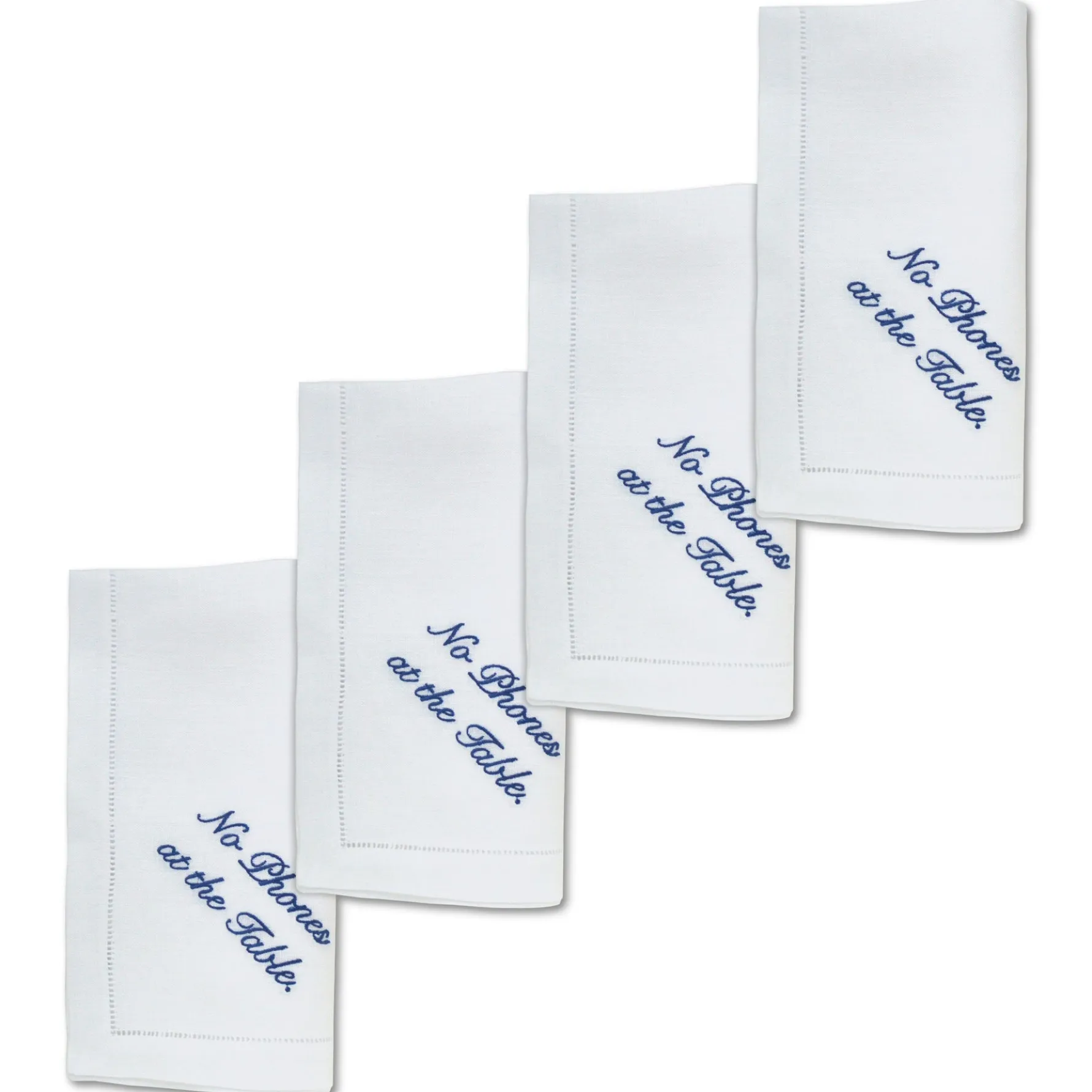 100% Linen napkins, embroidered with navy cotton thread.