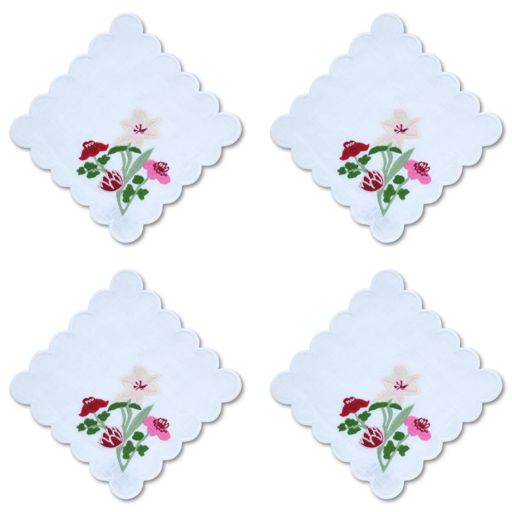 — Embroidered White Linen Napkins.