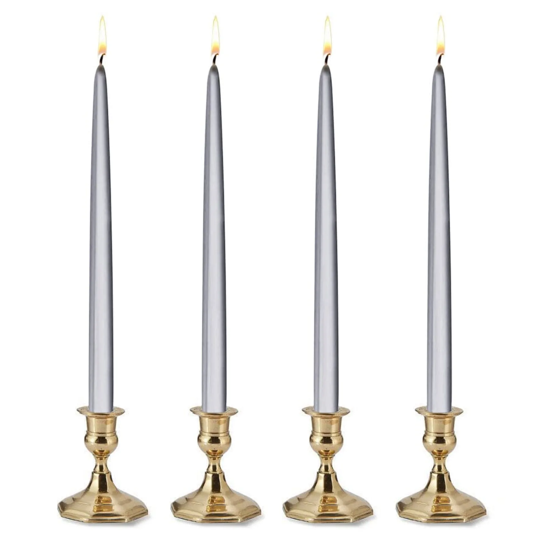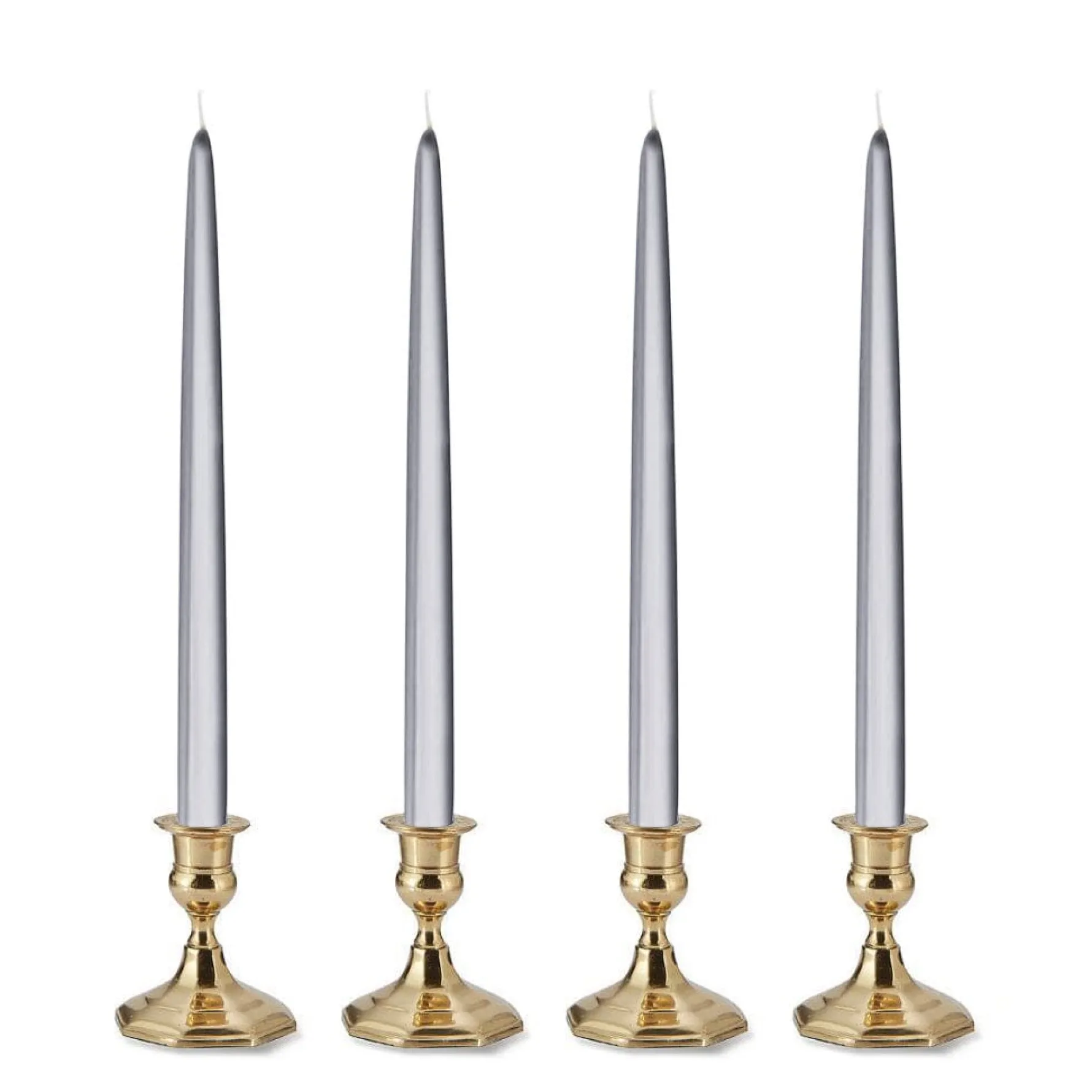 Metallic silver tapers set a festive ambiance.