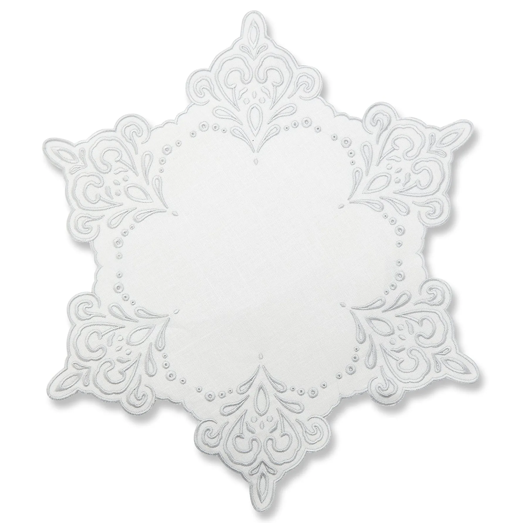 — 100% white linen with silver-colored thread