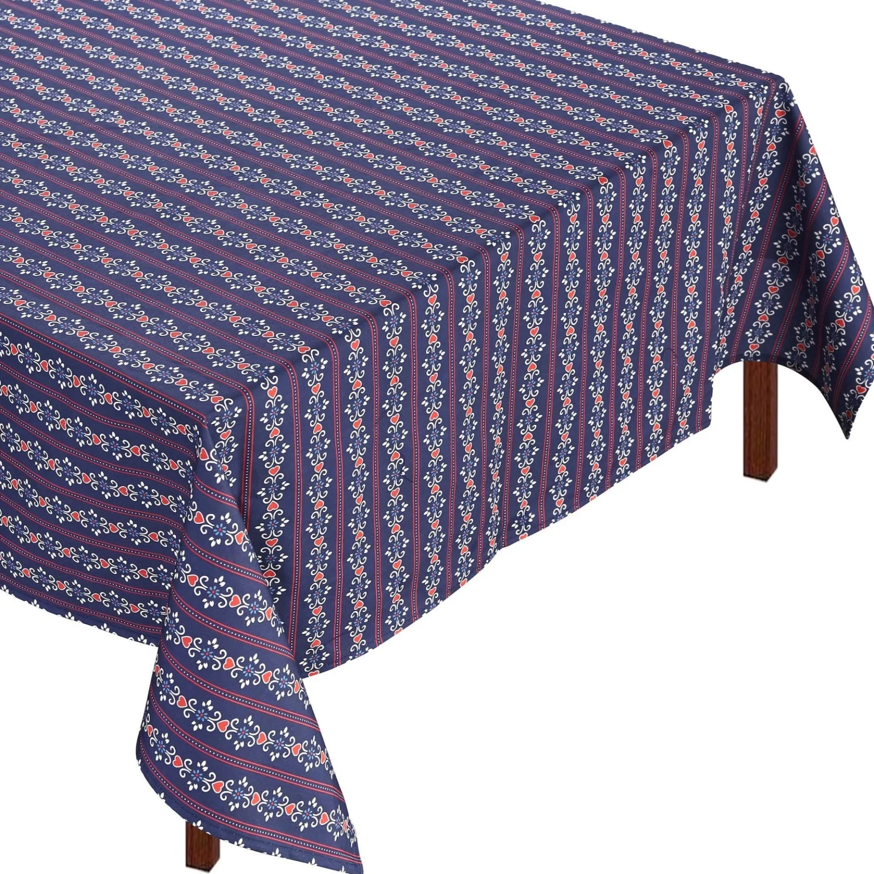 Inspired by vintage fabric, this red, white, and blueprinted tablecloth features small hearts and isa festive covering forJuly 4, Memorial Day, Labor Day, or election night.