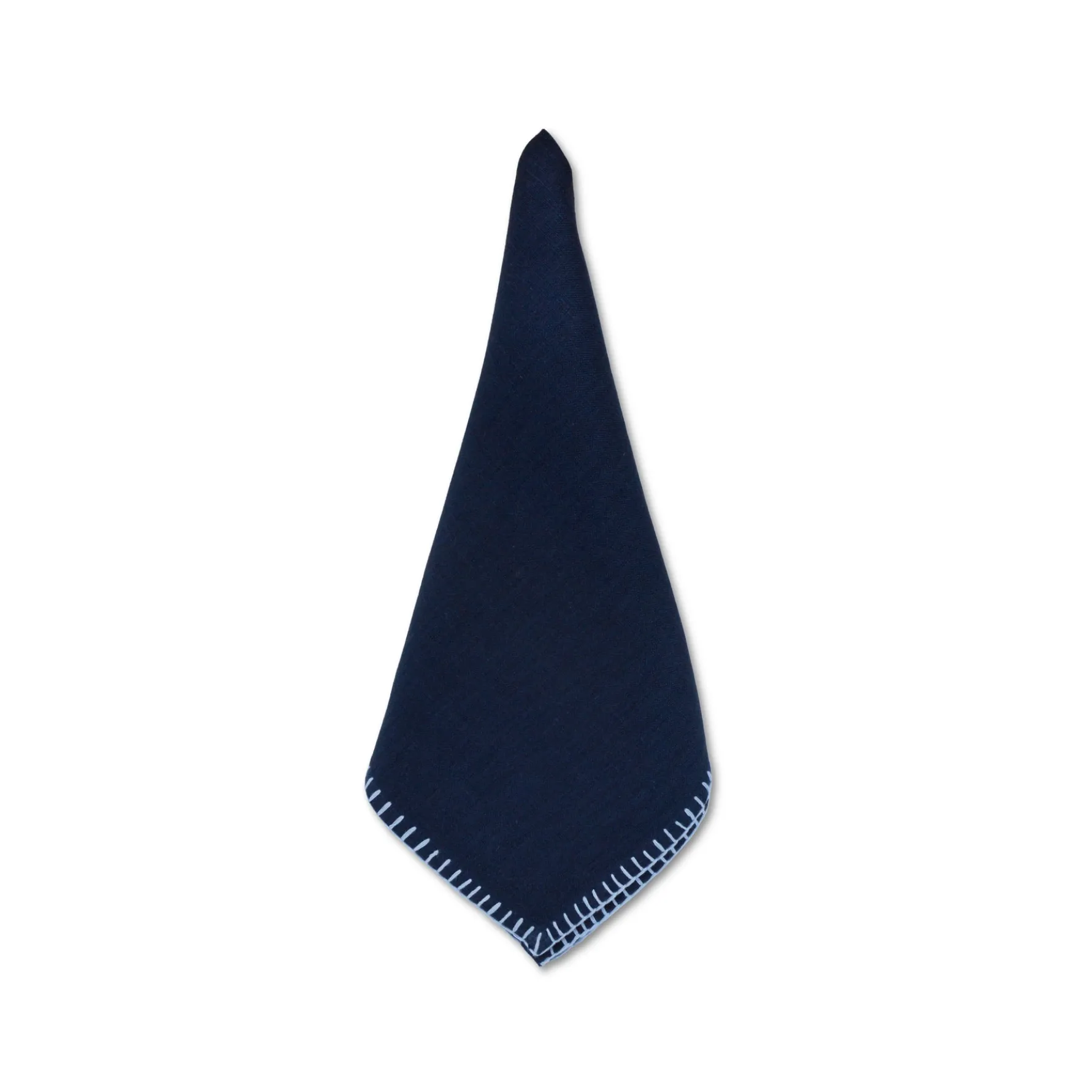 A set of dinner napkins featuring a timeless and handmade whipstitch pattern on the edge