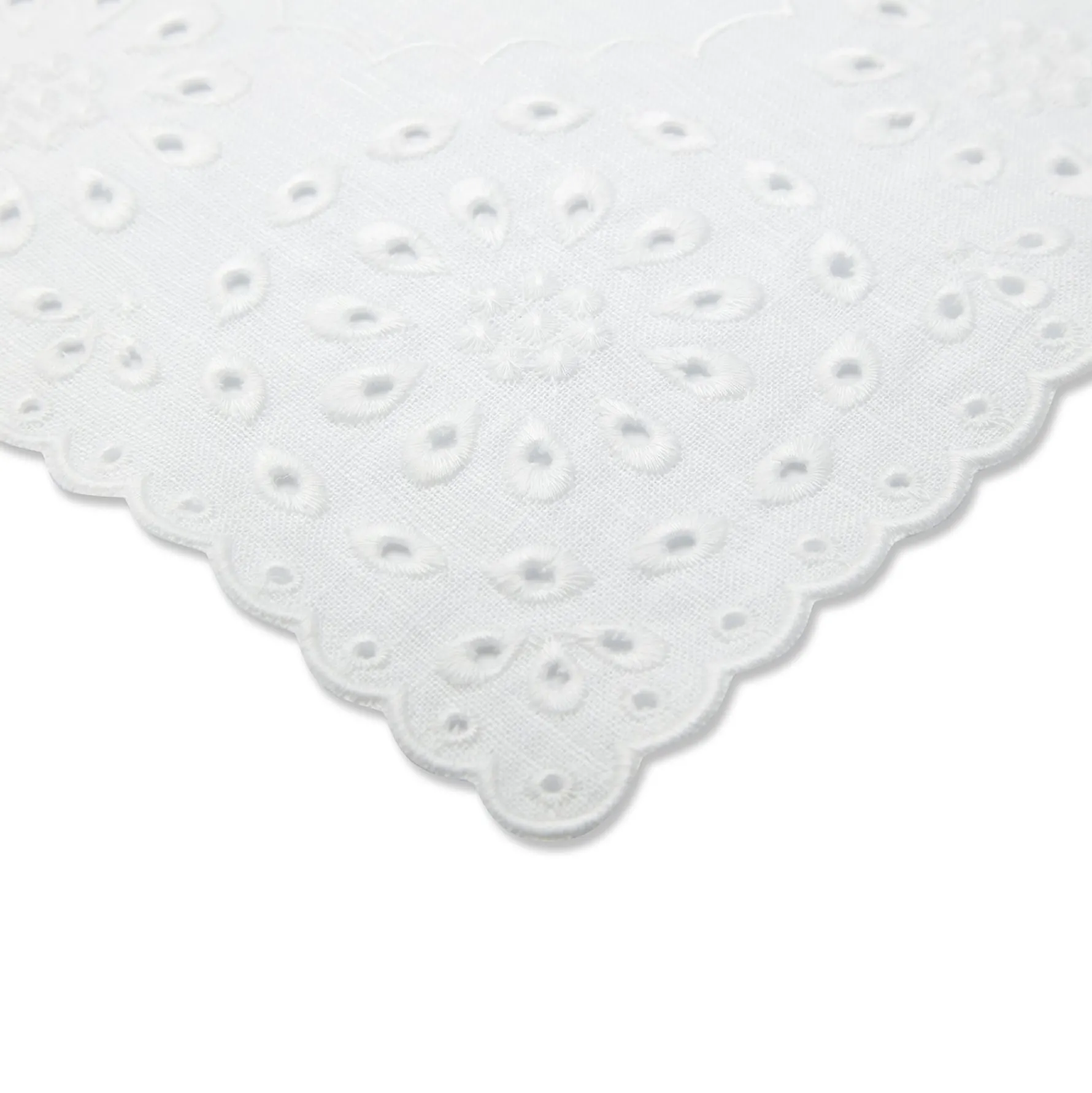 A set of dinner napkins featuring a timeless elegant eyelet pattern
