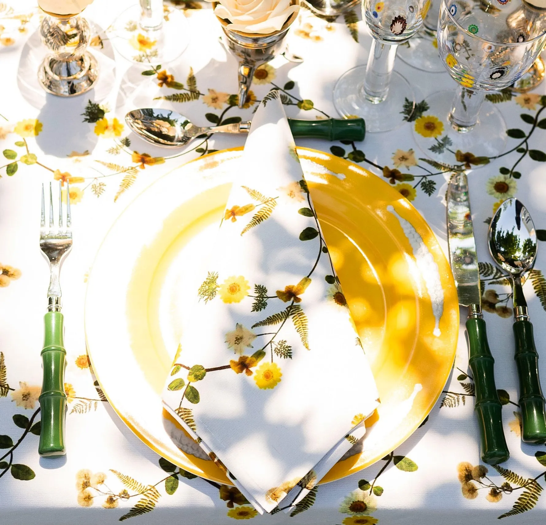 Beautiful and dainty yellow floral pattern on a white background