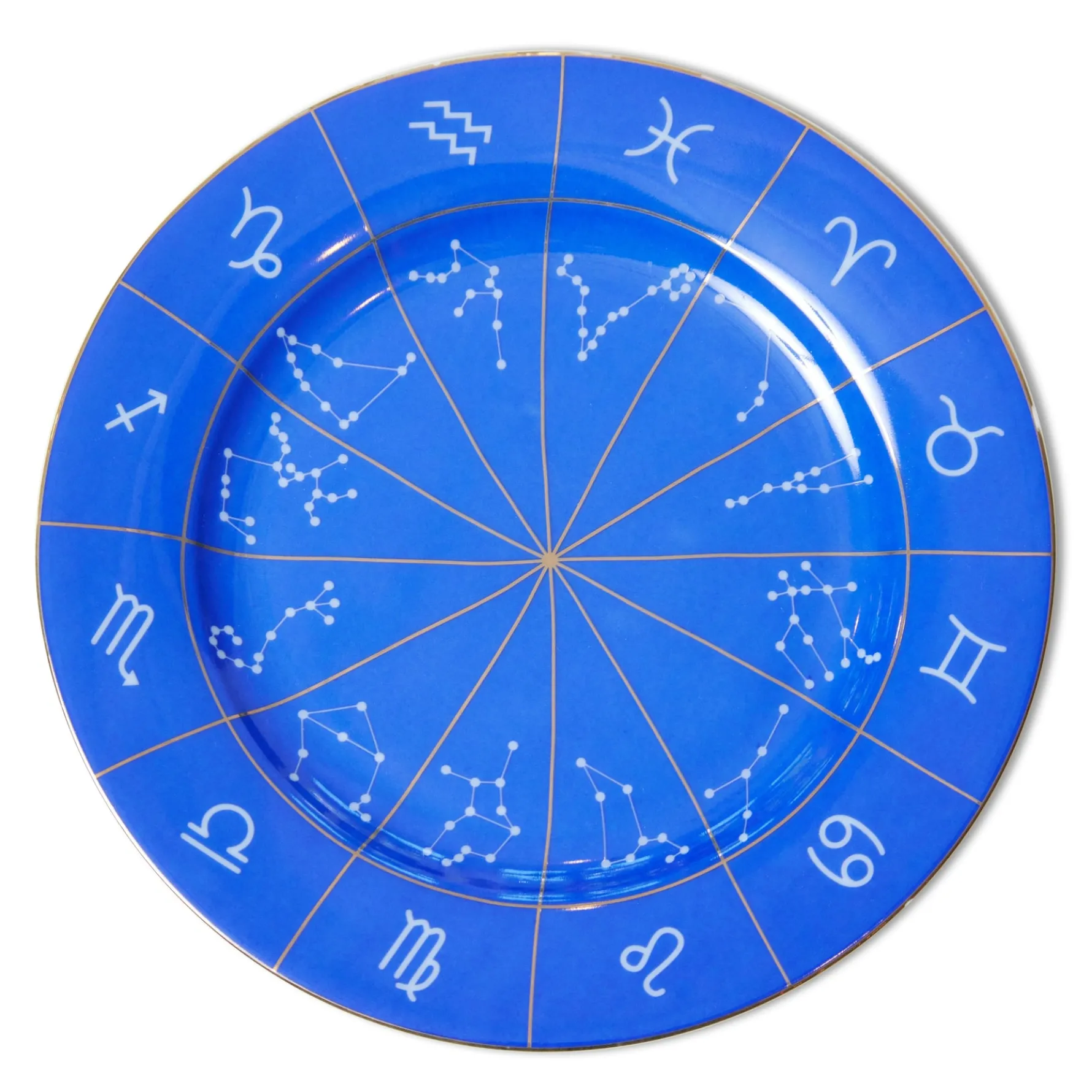 Blue & gold bone china plate perfect for astrological gatherings and other events for zodiac hobbyists.