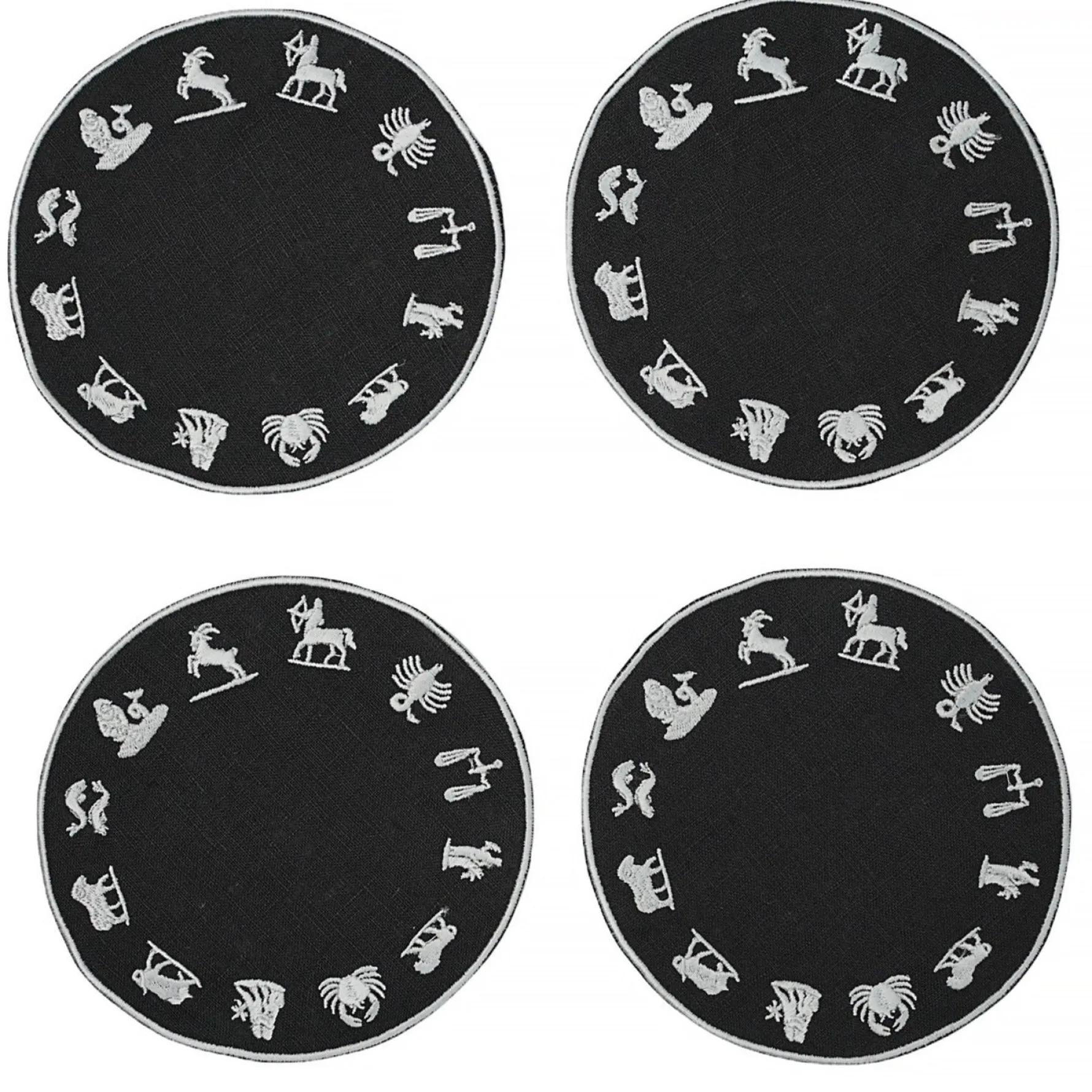 These round napkins depict a Zodiac wheel with all 12 signs.